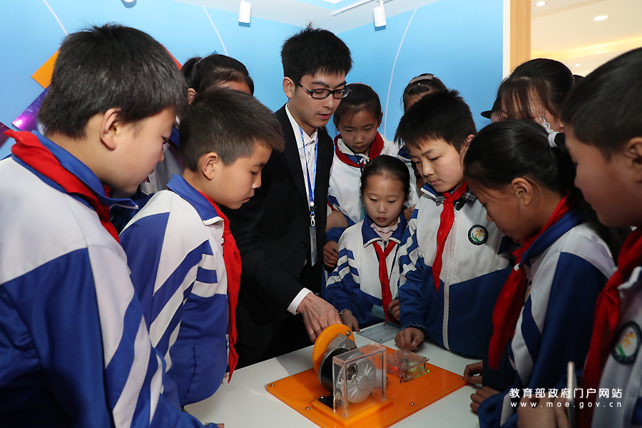 在少年宮的科技館里,學(xué)生們正在老師的講解下,對(duì)溫差發(fā)電、魔箱等原理進(jìn)行了解。(張勁松/攝 姚振/文)
