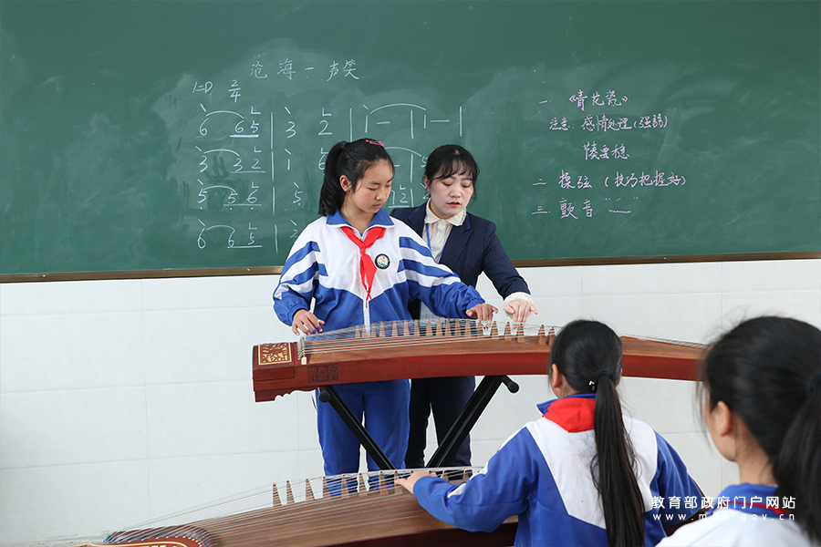 在少年宮的古箏課堂上,老師正在指導(dǎo)學(xué)生學(xué)習(xí)古箏彈奏中“顫音”技法。(張勁松/攝 姚振/文)