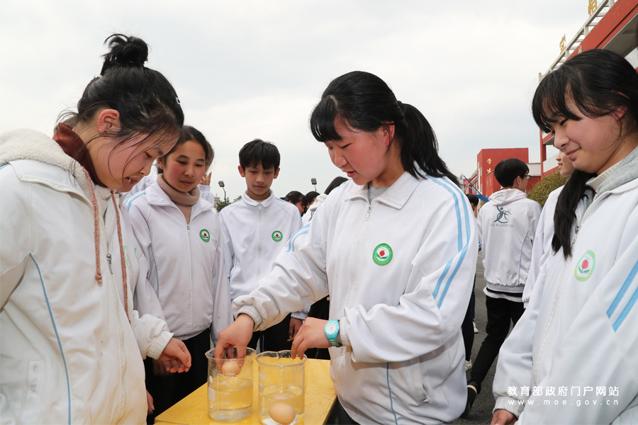 1/0老師正在為學(xué)生演示辣椒、黃瓜農(nóng)作物幼苗的插秧手法。南坑鎮(zhèn)妙泉學(xué)校堅(jiān)持“以勞樹德,以勞促智,以勞健體,以勞審美”的理念,以勞動教育為載體,著力加強(qiáng)實(shí)踐場所建設(shè),通過組織師生開荒、整地,在教育樓開辟了約1100平方米的蔬菜種植基地,作為學(xué)校的勞動實(shí)踐基地。同時(shí),學(xué)校還組織教師編寫了通俗易懂的校本教材作為學(xué)生勞動教育的補(bǔ)充教材。為深入貫徹落實(shí)全國教育大會精神,以奮進(jìn)姿態(tài)迎接祖國70周年華誕,由教育部新聞辦組織的“落實(shí)全教會 奮進(jìn)迎華誕”1+1系列發(fā)布采訪活動走進(jìn)江西,就2018年全國義務(wù)教育均衡發(fā)展督導(dǎo)評估情況走訪了萍鄉(xiāng)市蘆溪縣南坑鎮(zhèn)妙泉學(xué)校。(張勁松/攝 王唯 姚振/文)