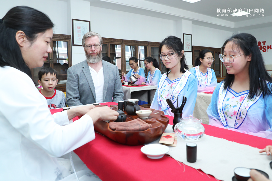 1/0身著中國(guó)傳統(tǒng)服飾的同學(xué)們正在上“中國(guó)茶文化”課,據(jù)授課教師朱玲介紹,學(xué)校會(huì)開設(shè)兩個(gè)學(xué)期的課程,以使學(xué)生學(xué)習(xí)傳統(tǒng)文化,了解茶道精神,使學(xué)生靜心、靜神,陶冶情操。(張勁松/攝 俞曼悅 謝沂楠/文)