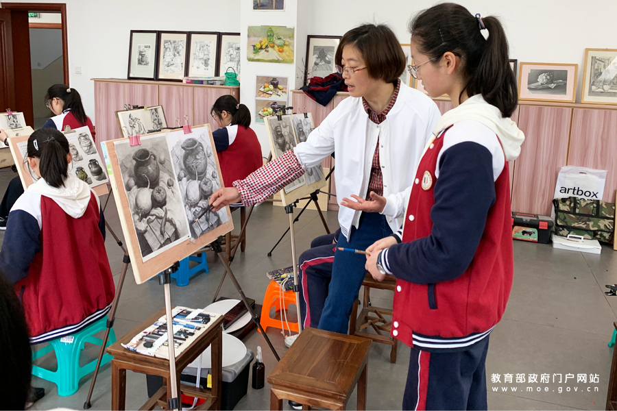 1/0勵(lì)志考入中國(guó)美術(shù)學(xué)院的高一年級(jí)學(xué)生田翊宏正在用國(guó)畫顏料和墨汁繪制國(guó)畫,并在畫中貼以金箔,以表現(xiàn)肌理效果。據(jù)田翊宏同學(xué)介紹,他會(huì)在繪畫中加入自己的所見,比如把參觀北大勺園建筑時(shí)看到的彩繪融入自己的畫作中。為深入貫徹落實(shí)全國(guó)教育大會(huì)精神,以?shī)^進(jìn)姿態(tài)迎接祖國(guó)70周年華誕,由教育部新聞辦組織的“落實(shí)全教會(huì) 奮進(jìn)迎華誕”1+1系列發(fā)布采訪活動(dòng)走進(jìn)江蘇,就學(xué)校美育改革發(fā)展及全國(guó)第六屆中小學(xué)生藝術(shù)展演活動(dòng)有關(guān)情況走進(jìn)江蘇省揚(yáng)中高級(jí)中學(xué)。(謝沂楠/攝 俞曼悅/文)