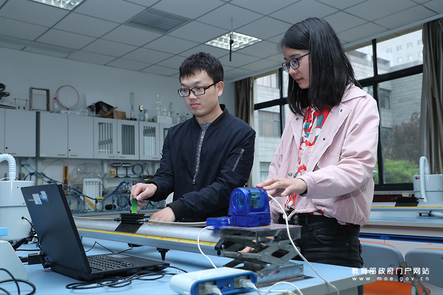 1/0在化學(xué)數(shù)字化實驗課堂上,靳老師正在指導(dǎo)學(xué)生通過分析數(shù)據(jù),觀測實驗對象的細微變化,以此培養(yǎng)學(xué)生的定量思維能力。該團隊的“基于手持技術(shù)探究碳酸氫鈉溶液作為二氧化碳緩沖液的性質(zhì)與原理”實驗被評為視頻示范展示作品,并作為教學(xué)資源進行廣泛應(yīng)用。學(xué)校在卓越教師培養(yǎng)中,始終秉承“育人為本、德育為先”的理念,注重能力與素養(yǎng)相結(jié)合,大力開展師德養(yǎng)成教育。為深入貫徹落實全國教育大會精神,以奮進姿態(tài)迎接祖國70周年華誕,由教育部新聞辦組織的“落實全教會 奮進迎華誕”1+1系列發(fā)布采訪活動走進天津,就介紹“六卓越一拔尖”計劃2.0有關(guān)情況走進天津師范大學(xué)。(張勁松/攝 謝沂楠 曹建 姚振/文)
