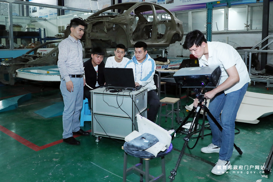在重慶電子工程職業(yè)學(xué)院汽車工程設(shè)計(jì)工作坊,張俊峰老師正在指導(dǎo)智能制造與汽車學(xué)院2017級(jí)汽車制造與裝配技術(shù)專業(yè)學(xué)生進(jìn)行汽車生產(chǎn)、設(shè)計(jì)相關(guān)數(shù)據(jù)的采集。(張勁松/攝 忠建豐 謝沂楠/文)