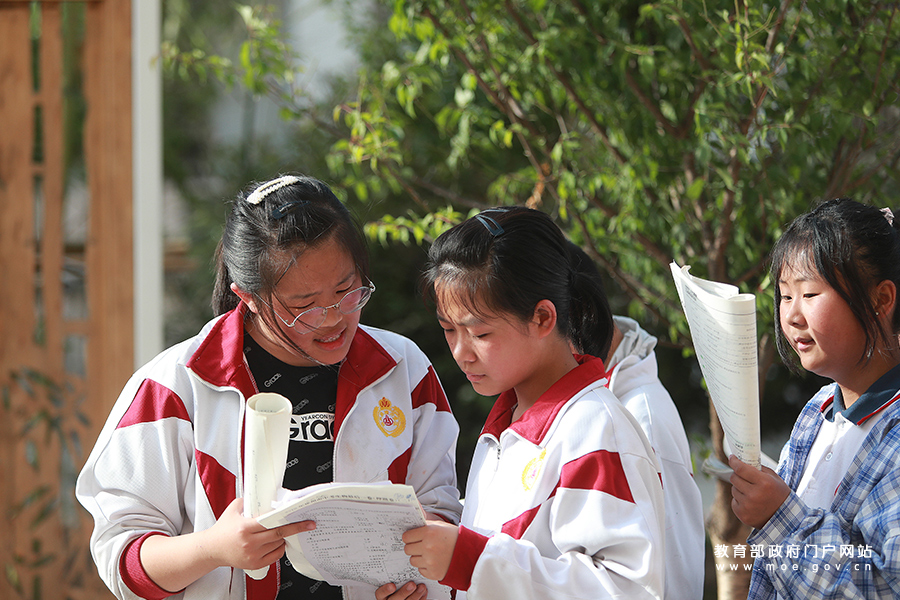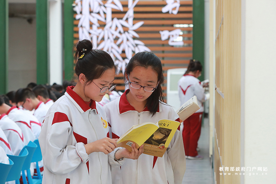 下午的課后閱讀時間,西朱中學(xué)校園內(nèi)隨處可見邊閱讀邊交流的學(xué)生。(李智梅 張學(xué)軍/攝)