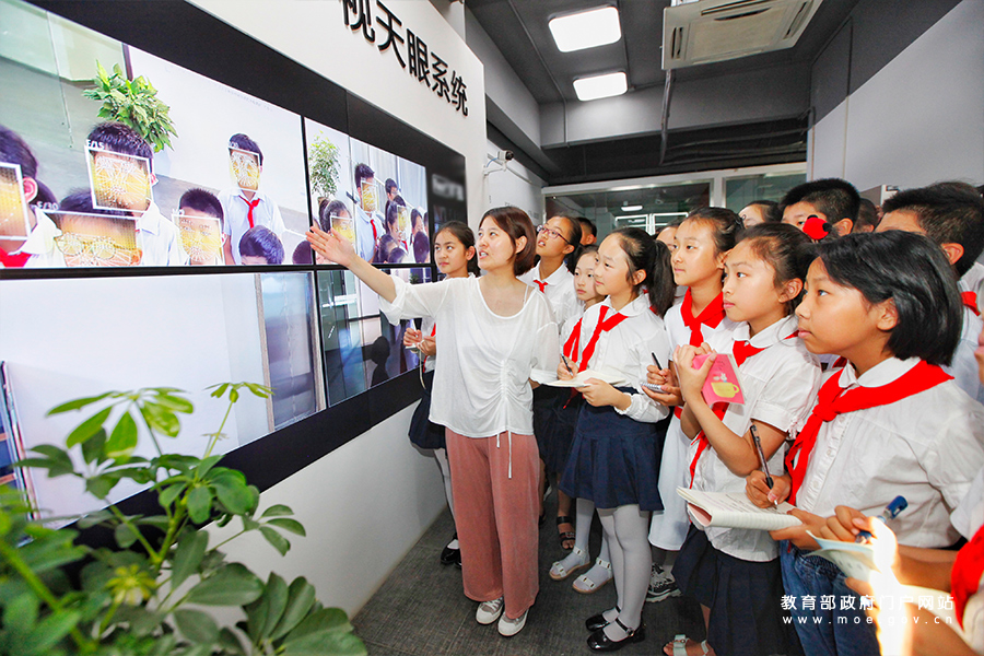 徐州市民主實驗學(xué)校學(xué)生在聽園區(qū)工作人員介紹“天眼”的功能和在智慧城市中的用途。(蒯創(chuàng)/攝)