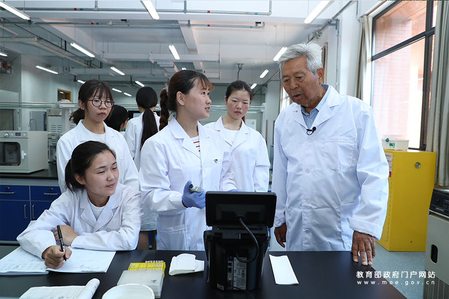 1/0王輝教授為學(xué)生演示DNA濃度測(cè)定試驗(yàn)。(張勁松/攝 李佩 曹建 忠建豐/文)