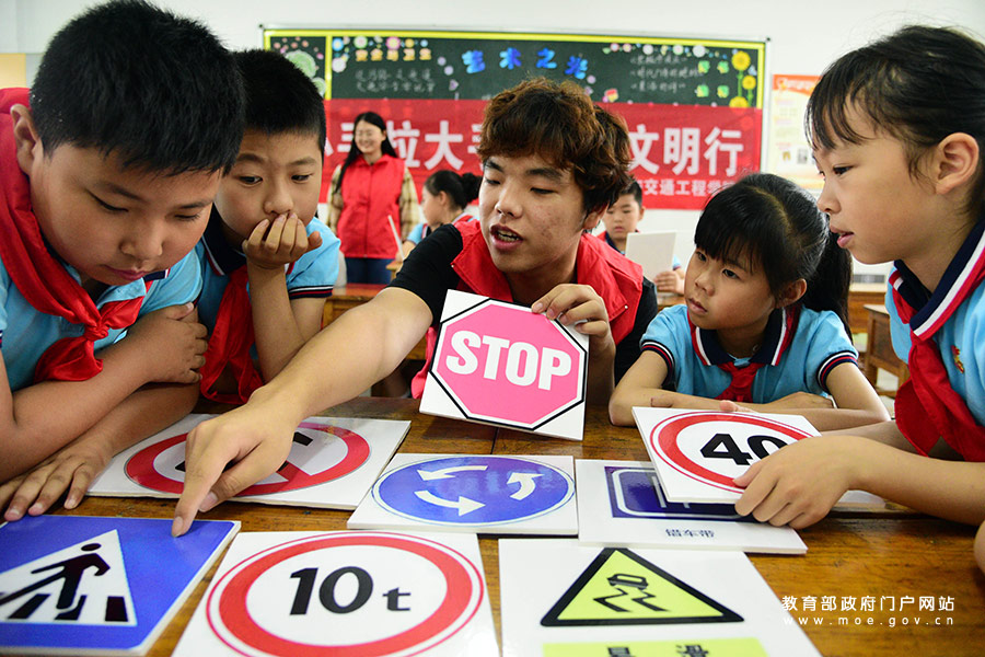 暑假臨近,江蘇大學(xué)志愿者走進(jìn)鎮(zhèn)江市南徐小學(xué),開展“學(xué)交通知識(shí) 度快樂暑假”活動(dòng)。志愿者通過模擬高架橋路況場(chǎng)景、講解交通標(biāo)志含義,指導(dǎo)小學(xué)生學(xué)習(xí)交通安全知識(shí),增強(qiáng)安全意識(shí),快樂文明度暑假。(石玉成 豐德/攝)