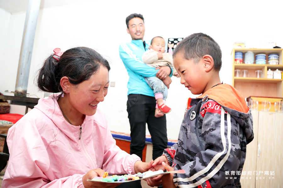 1/0甘肅省夏河縣桑科鎮(zhèn)中心雙語幼兒園中班幼兒索南東知將自己制作的手工作品送給媽媽。甘肅省自2016年底開始,逐步對建檔立卡的貧困家庭學(xué)生制定相關(guān)政策,增加補(bǔ)助,并率先對全省在園幼兒免除保教費(fèi)。為深入貫徹落實(shí)全國教育大會精神,以奮進(jìn)姿態(tài)迎接祖國70周年華誕,由教育部新聞辦組織的“落實(shí)全教會 奮進(jìn)迎華誕”1+1系列發(fā)布采訪活動走進(jìn)甘肅省夏河縣,就保障家庭經(jīng)濟(jì)困難學(xué)生順利入學(xué)的政策措施及資助工作開展情況進(jìn)行采訪。(張勁松/攝 謝沂楠 姚振/文)
