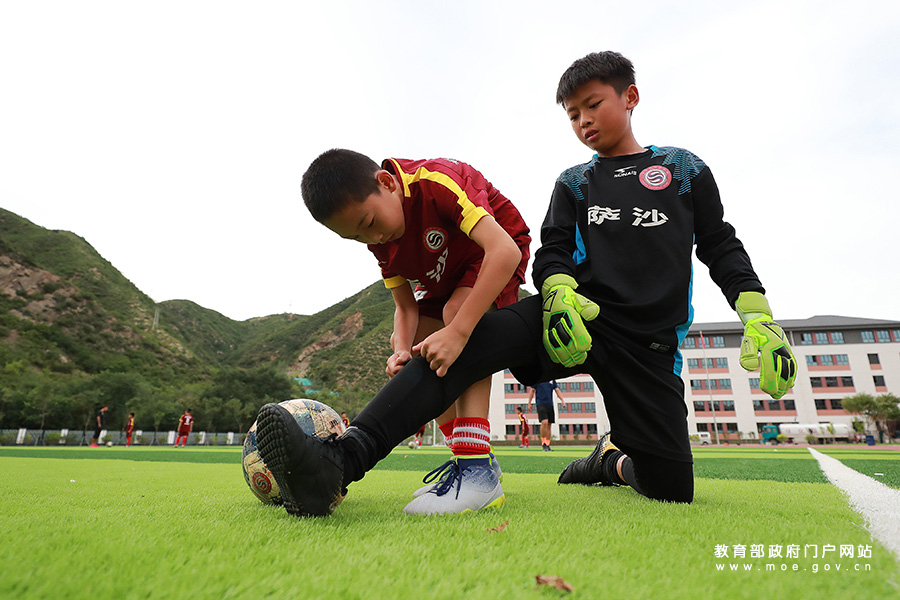 8月14日,雙灤四中操場(chǎng)上,石家莊薩沙足球俱樂部小隊(duì)員幫助守門員整理裝備。(楊樹鳳/文 張學(xué)軍/攝)