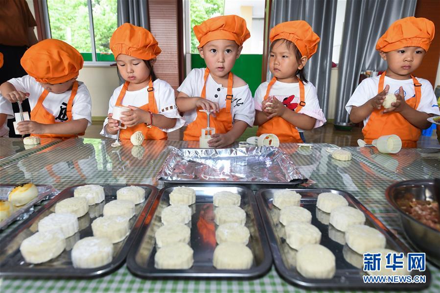 1/09月11日,孩子們在老師的帶領(lǐng)下參加手工月餅制作活動。當日,浙江省長興縣畫溪街道長橋中心幼兒園舉辦“童心巧手”迎中秋活動。孩子們在老師的帶領(lǐng)下參加“八月十五月兒圓”廢舊紙漿制作月亮、師生長卷“手繪家鄉(xiāng)新面貌”、傳統(tǒng)月餅迎中秋等活動,共同感受傳統(tǒng)文化的魅力。(新華社記者 徐昱/攝)