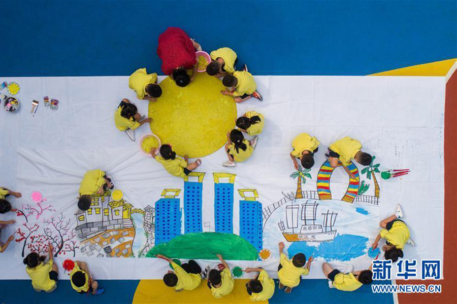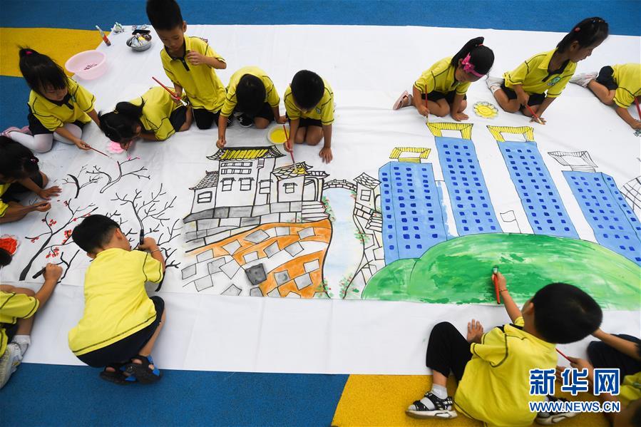 1/09月11日,孩子們在參加“手繪家鄉(xiāng)新面貌”活動。(新華社記者 徐昱/攝)