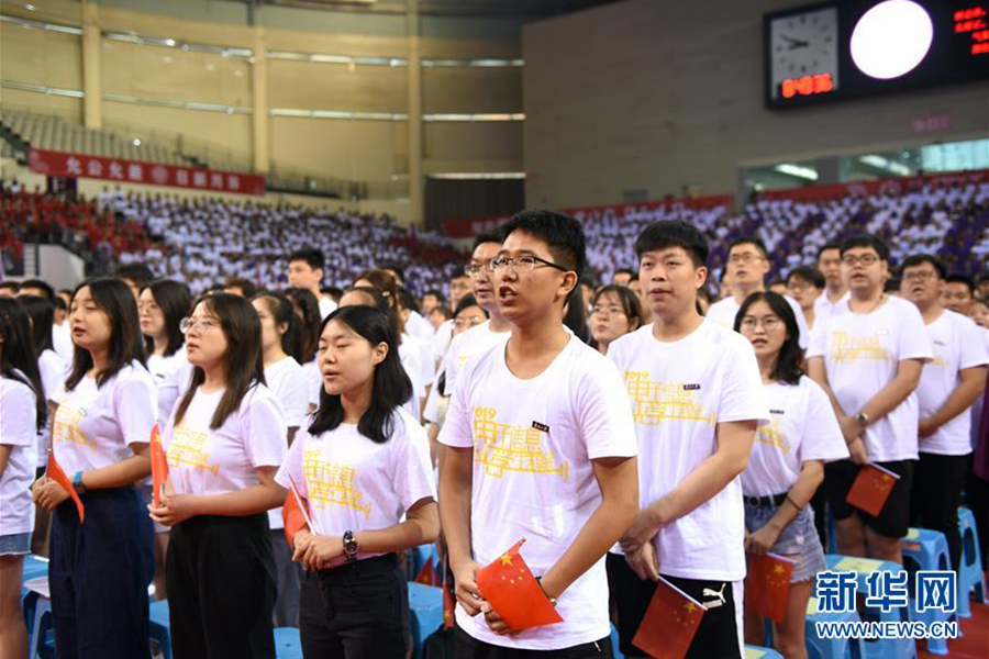 1/0學(xué)生在江西師范大學(xué)參加“青春告白祖國(guó)”宣講會(huì)(9月3日攝)。(新華社發(fā))