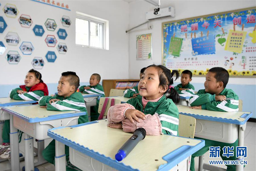 1/010月9日,寧夏固原市涇源縣涇河源鎮(zhèn)白面民族小學(xué)師生在課堂教學(xué)的同時,與當(dāng)?shù)馗叻宕?、白吉村教學(xué)點(diǎn)的學(xué)生進(jìn)行網(wǎng)絡(luò)在線互動。(新華社記者 馮開華/攝)