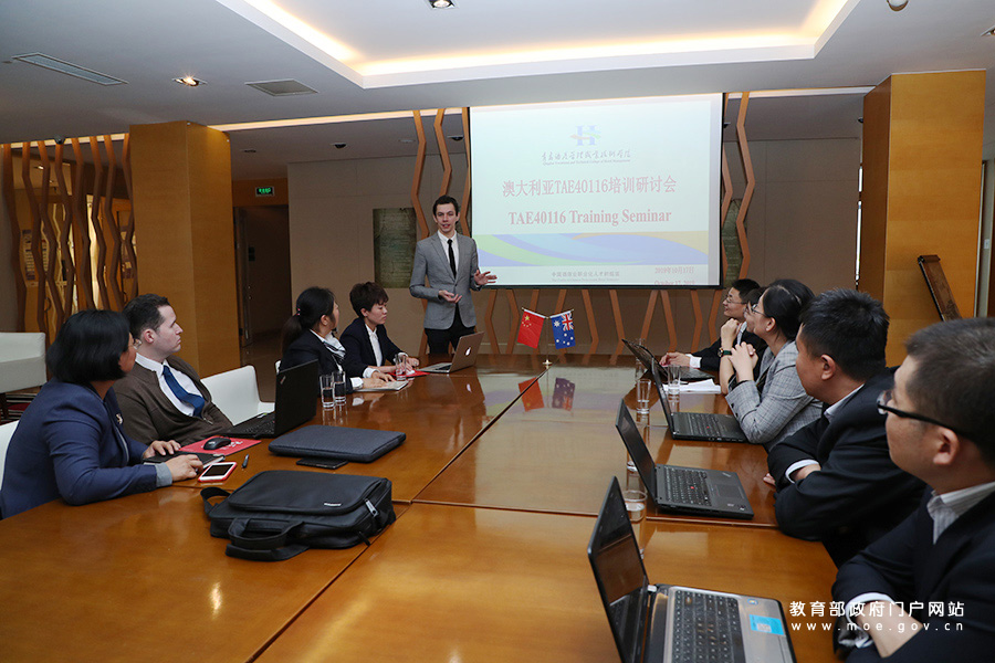 來(lái)自澳大利亞的外教尤瑞正在分享在中國(guó)的授課經(jīng)歷。為提升教學(xué)效果,青島酒店職業(yè)技術(shù)學(xué)院已有21名教師系統(tǒng)掌握澳大利亞職業(yè)教育教學(xué)標(biāo)準(zhǔn)、教學(xué)理念和教學(xué)方法,并取得澳大利亞TAE40116教師職業(yè)資格證書(shū)。(張勁松/攝 姚振 謝沂楠/文)