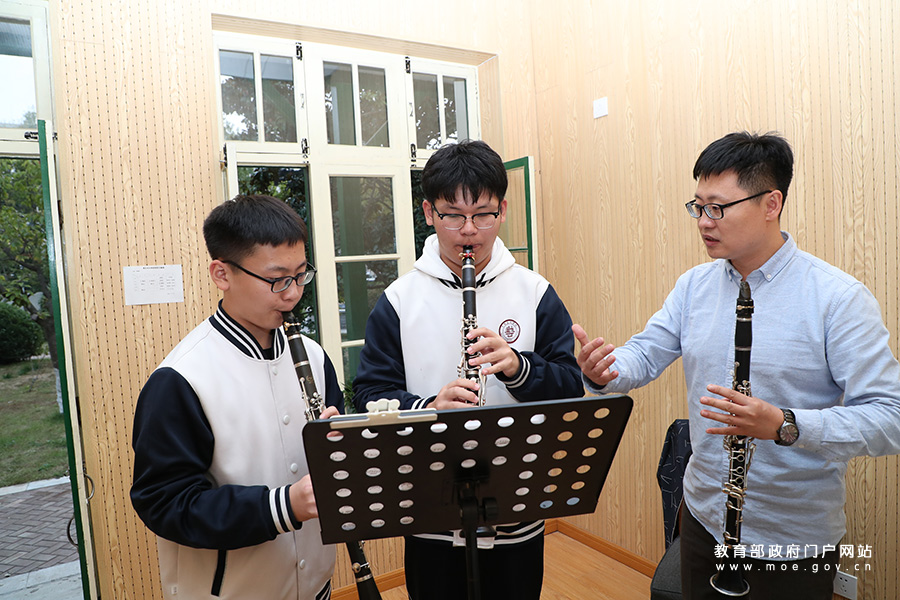 1/0張貫宇老師正在指導器樂專業(yè)高二年級的學生練習單簧管演奏技巧,通過分析音樂作品,使學生了解作者的創(chuàng)作風格,從而提升演奏水平。青島藝術學校從師德、師能兩個維度;從新教師、青年教師、骨干教師、首席教師、名師五個梯度,系統(tǒng)加強教師隊伍培養(yǎng)。張貫宇作為學校青年成才計劃成功實施的典范,對青年教師成長有示范作用。為深入貫徹落實全國教育大會精神,以奮進姿態(tài)迎接祖國70周年華誕,由教育部新聞辦組織的“落實全教會 奮進迎華誕”1+1系列發(fā)布采訪活動走進青島,就深化新時代職業(yè)教育“雙師型”教師隊伍建設改革實施情況對青島藝術學校進行了采訪。(張勁松/攝 姚振 謝沂楠/文)