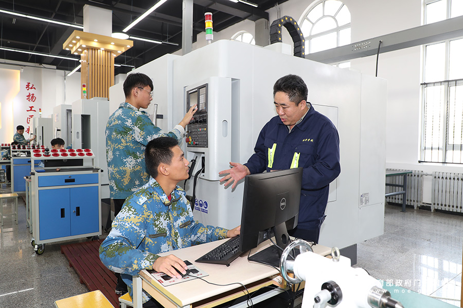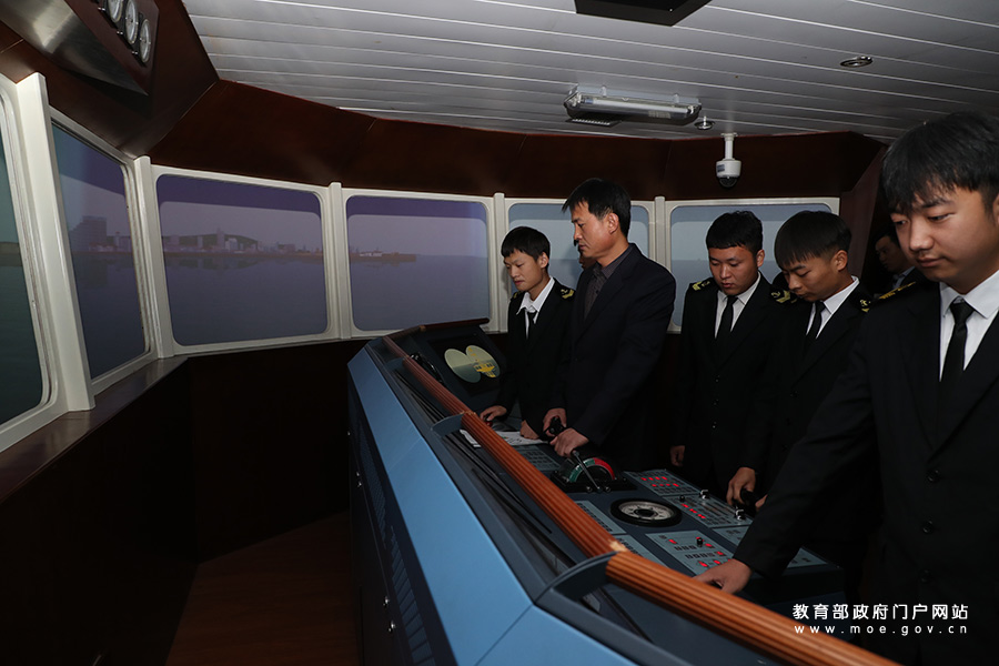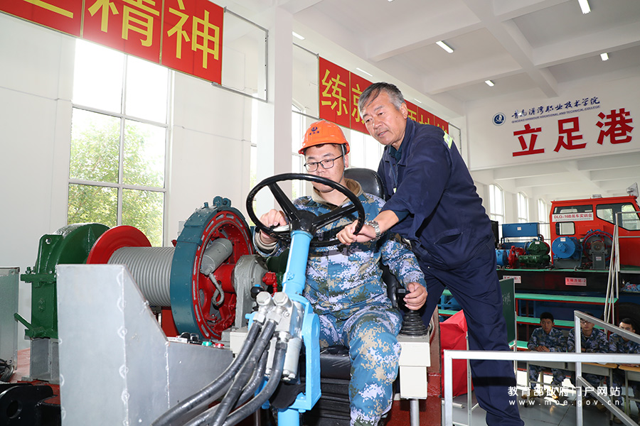 1/0青島港灣職業(yè)技術(shù)學(xué)院港口機(jī)械與自動(dòng)控制專業(yè)大二年級(jí)的學(xué)生在老師的指導(dǎo)下正在進(jìn)行場(chǎng)橋?qū)嵅?,通過對(duì)操作臺(tái)上手柄不同檔位的選擇,去感受前進(jìn)的速度和吊具空中擺動(dòng)的幅度。十年來,該校從港內(nèi)引進(jìn)了126名專業(yè)對(duì)口、實(shí)踐水平高、管理經(jīng)驗(yàn)豐富的高級(jí)工程師、技師作為學(xué)校專職專業(yè)課教師和實(shí)訓(xùn)課教師,在“雙師型”教師隊(duì)伍建設(shè)上取得了顯著成效,“雙師型”教師占95%以上。為深入貫徹落實(shí)全國教育大會(huì)精神,以奮進(jìn)姿態(tài)迎接祖國70周年華誕,由教育部新聞辦組織的“落實(shí)全教會(huì) 奮進(jìn)迎華誕”1+1系列發(fā)布采訪活動(dòng)走進(jìn)青島,就深化新時(shí)代職業(yè)教育“雙師型”教師隊(duì)伍建設(shè)改革實(shí)施情況對(duì)青島港灣職業(yè)技術(shù)學(xué)院進(jìn)行了采訪。(張勁松/攝 姚振 謝沂楠/文)