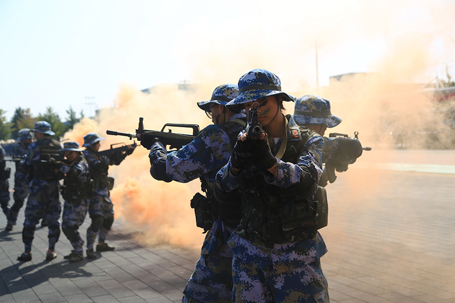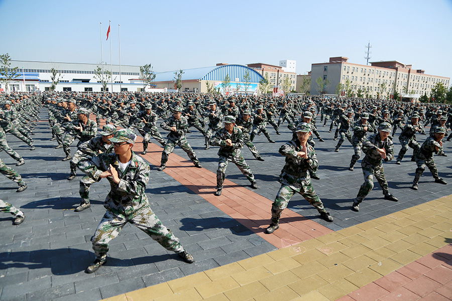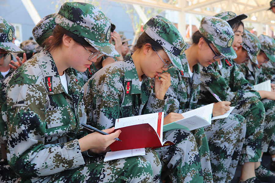 1/0隊(duì)伍整肅,神采飛揚(yáng)——北京大學(xué)軍訓(xùn)團(tuán)隊(duì)列訓(xùn)練。2019年是五四運(yùn)動(dòng)100周年,也是中華人民共和國成立70周年。依據(jù)《普通高等學(xué)校軍事課教學(xué)大綱》(2019年8月版),圍繞立德樹人根本任務(wù)和強(qiáng)軍目標(biāo)根本要求,北京大學(xué)確定“我和我的祖國”為軍訓(xùn)主題,圍繞愛國主義教育、集體主義教育、作風(fēng)紀(jì)律培養(yǎng)三條主線,確定訓(xùn)練內(nèi)容,每日舉行升國旗儀式,安排理論授課、主題班會(huì)、主題教育等環(huán)節(jié),將思想政治教育貫穿軍事訓(xùn)練全過程。(供圖:北京大學(xué))