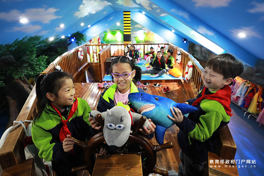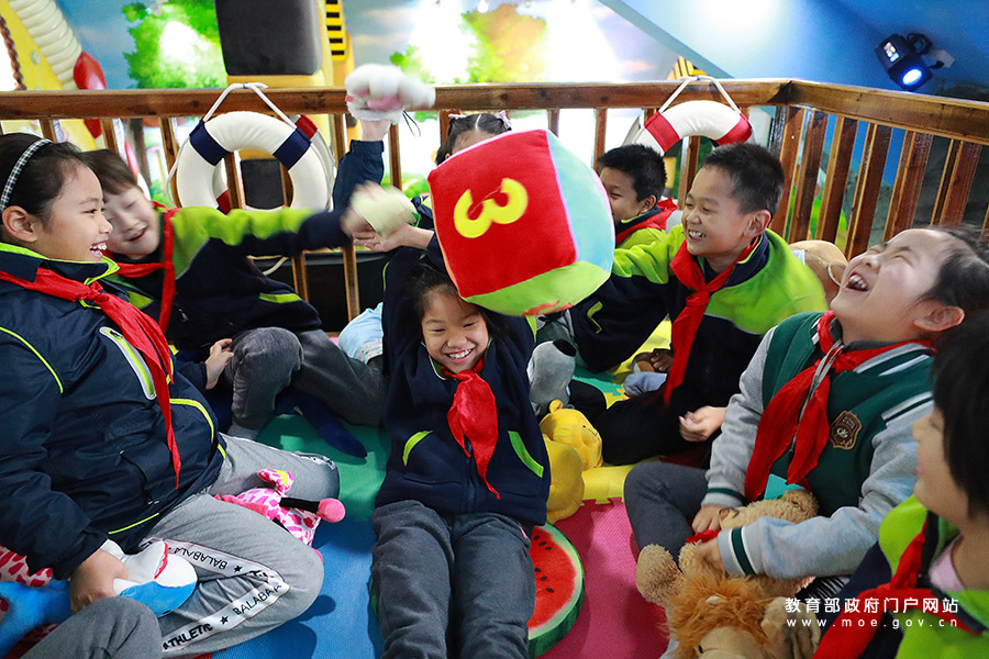 1/011月18日,小學(xué)生在寶葫蘆童話館內(nèi)做游戲。(王媛、張學(xué)軍/攝)