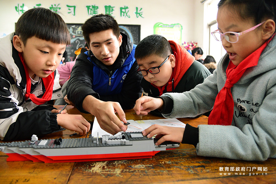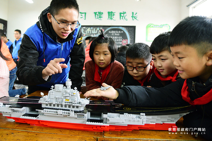 志愿者在為小學(xué)生講解“智能河長”無人艦船的功能。近日,江蘇省鎮(zhèn)江市潤州區(qū)平山村和江蘇科技大學(xué)的志愿者共同走進(jìn)官塘橋中心小學(xué),通過航空母艦、護(hù)衛(wèi)艦?zāi)P?、“智能河長”無人艦船,為小學(xué)生講解艦船與海防科普知識,并指導(dǎo)孩子們組裝驅(qū)逐艦?zāi)P停惺芸萍槛攘?。(石玉?攝)