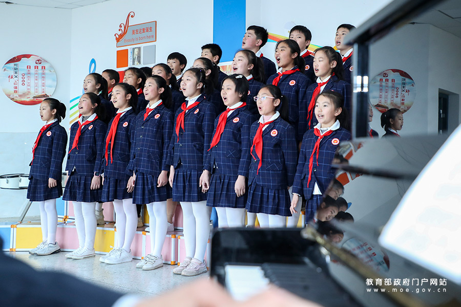 1/0長(zhǎng)治市長(zhǎng)子縣東方紅學(xué)校合唱社團(tuán)的學(xué)生在排練歌曲《我和我的祖國(guó)》。(張勁松/攝 張勁松/文)