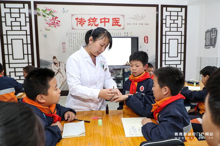 1/0長(zhǎng)治市長(zhǎng)子縣東方紅學(xué)校聘請(qǐng)中醫(yī)院醫(yī)師為中醫(yī)社團(tuán)學(xué)生演示中醫(yī)傳統(tǒng)治療方法“艾灸”。(張勁松/攝 張勁松/文)