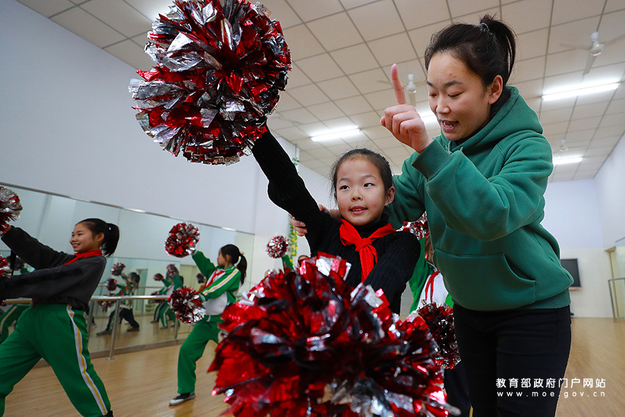 曾榮獲全國比賽冠軍的雙灤區(qū)第五小學啦啦隊在訓練。(楊樹鳳、張學軍/攝)