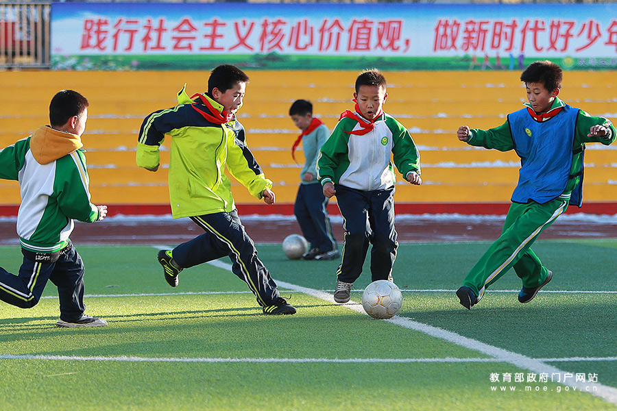 雙灤區(qū)第五小學校園足球隊的孩子們在綠茵場上盡展英姿。(楊樹鳳、張學軍/攝)