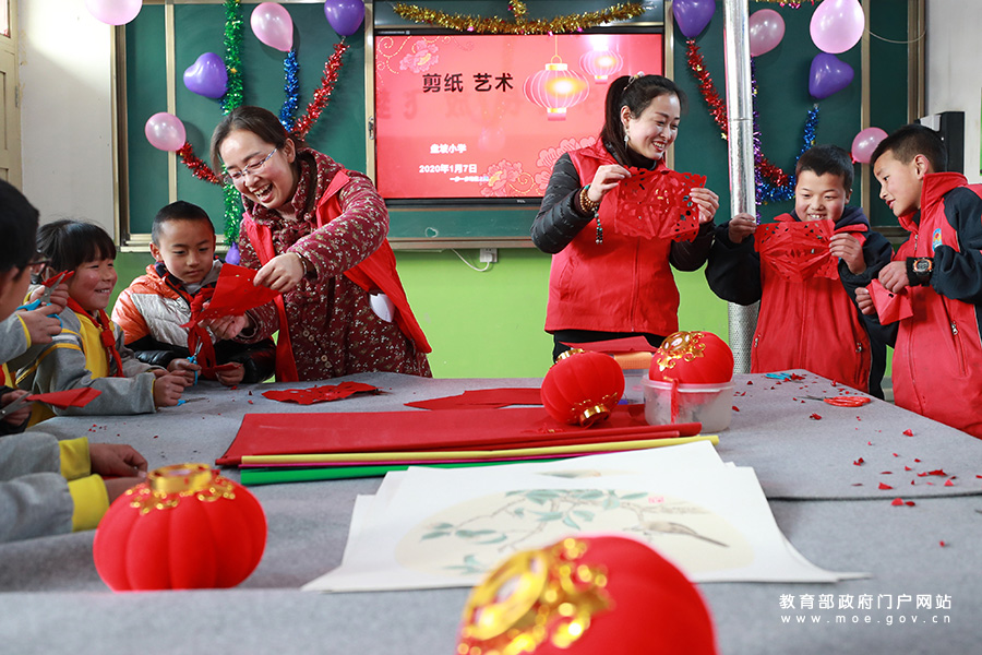 1/0“送教團(tuán)”老師與孩子們一起熱舞。近日,由甘肅省天水市武山縣武山一中、東順初級中學(xué)、渭北初級中學(xué)的5名城區(qū)教師組成的“送教團(tuán)”來到位于地處該縣深山區(qū)的溫泉鄉(xiāng)盤坡小學(xué),開展送教幫扶活動,為山區(qū)孩子送來了一份特殊的新春賀禮。近年來,武山縣針對山區(qū)學(xué)校音體美教師結(jié)構(gòu)性短缺、藝術(shù)類課程質(zhì)量不高等實(shí)際情況,發(fā)起成立了“璞玉留芳”武山教師志愿者藝術(shù)團(tuán),通過開展支教幫扶活動,讓山區(qū)孩子享受到了優(yōu)質(zhì)教育資源,促進(jìn)了全縣教育優(yōu)質(zhì)均衡發(fā)展。(張學(xué)軍、尹曉軍/攝)