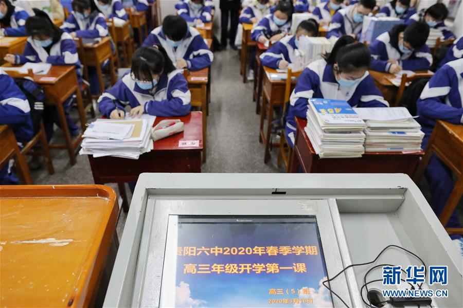 1/03月16日,貴陽(yáng)市第六中學(xué)高三學(xué)生在開學(xué)第一課的課堂上。當(dāng)日,貴州省高三年級(jí)和初三年級(jí)學(xué)生正式開學(xué)復(fù)課。(新華社記者 歐東衢/攝)