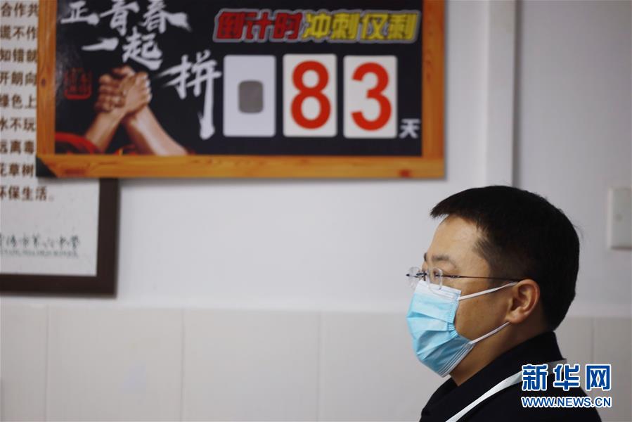 1/03月16日,貴陽(yáng)市第六中學(xué)一名高三任課老師在高考倒計(jì)時(shí)83天的指示牌前。(新華社記者 歐東衢/攝)