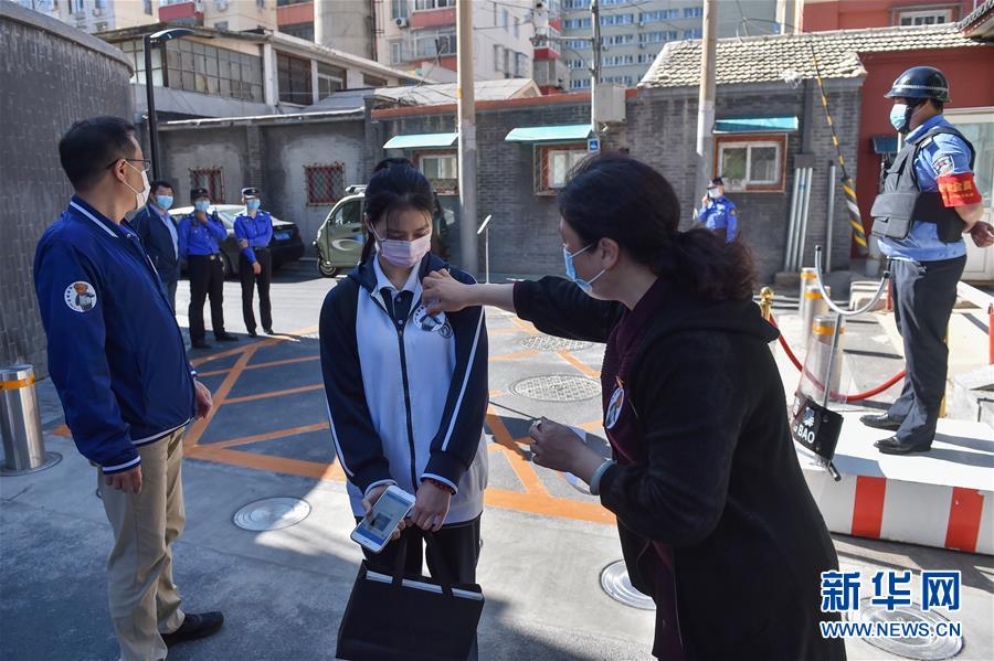 1/05月11日,北京市第一六六中學(xué)的學(xué)生有序進(jìn)入學(xué)校。(新華社記者 彭子洋/攝)