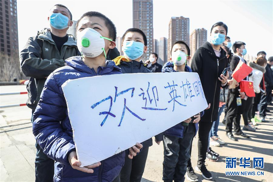 1/0遼寧沈陽(yáng)一高速公路出口,男孩們列隊(duì)歡迎遼寧對(duì)口支援襄陽(yáng)醫(yī)療隊(duì)歸來(lái)(3月21日攝)。(新華社記者 潘昱龍/攝)