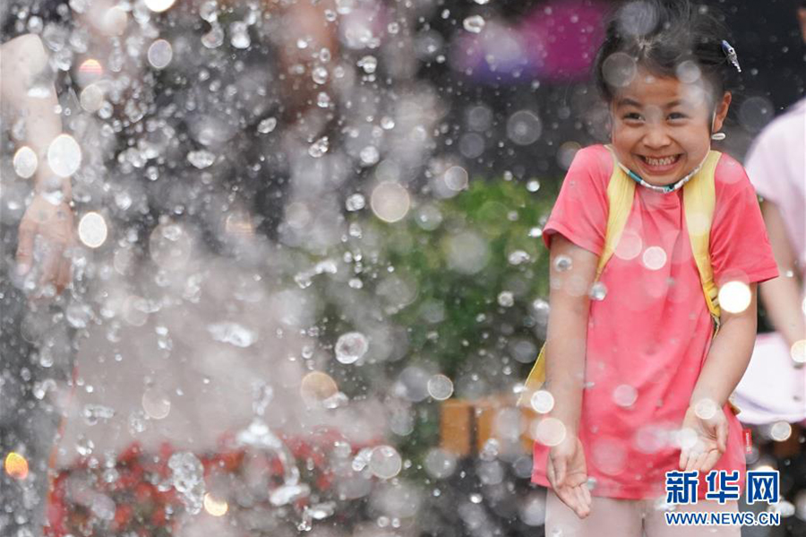 1/0北京王府井步行街,小朋友在噴泉前玩耍(5月29日攝)。(新華社記者 鞠煥宗/攝)