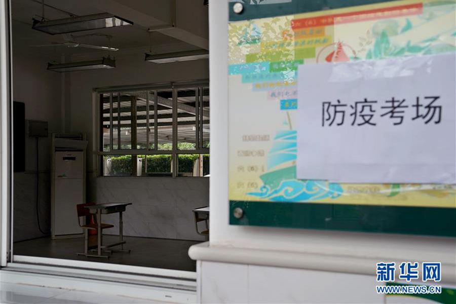 1/06月27日,上海市閔行區(qū)莘松中學(xué)考點(diǎn)內(nèi)設(shè)置的防疫考場,考試進(jìn)行中如有考生出現(xiàn)發(fā)熱或不適等,將移至防疫考場。(新華社記者 劉穎/攝)