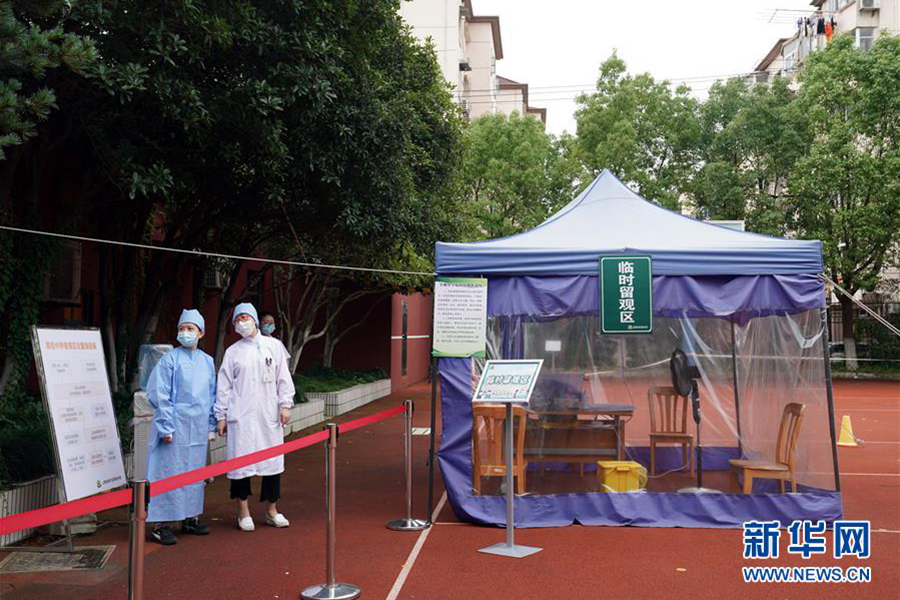 1/06月27日,上海市閔行區(qū)莘松中學(xué)考點(diǎn)中設(shè)置的“臨時(shí)留觀區(qū)”,入校時(shí)體溫過高的考生將在此留觀。(新華社記者 劉穎/攝)