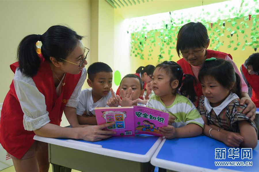 1/07月13日,在廣西融水苗族自治縣桿洞鄉(xiāng)黨鳩小學(xué),融水海事處工作人員指導(dǎo)學(xué)生穿救生衣。當(dāng)日,廣西柳州融水海事處在桿洞鄉(xiāng)黨鳩小學(xué)開展防溺水及水上交通安全知識教育活動,向?qū)W生們普及水上安全知識,并講解水上應(yīng)急救援技能。(新華社記者 黃孝邦/攝)