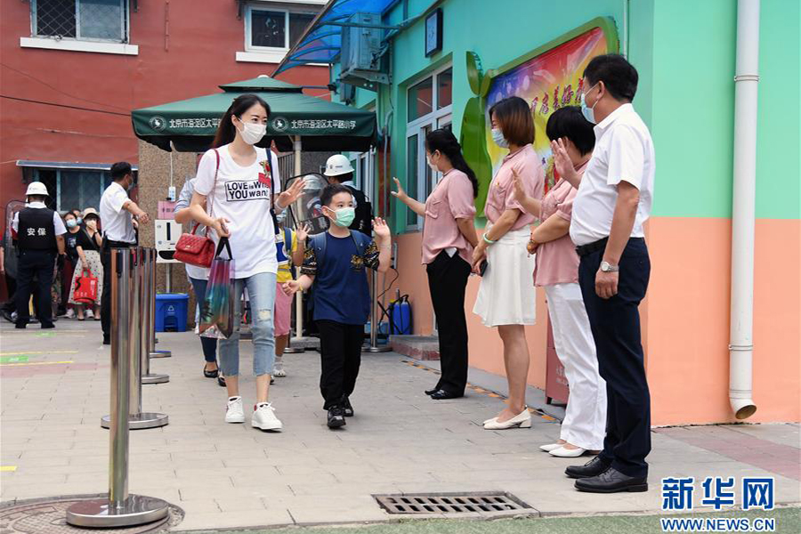 1/08月29日,在北京市海淀區(qū)太平路小學(xué),一年級學(xué)生在接受入學(xué)培訓(xùn)。 當(dāng)日,北京市小學(xué)一年級、初一、初三、高一、高二、高三六個(gè)年級首批開學(xué)。9月1日、9月7日中小學(xué)其他年級將陸續(xù)開學(xué)。(新華社記者 任超/攝)