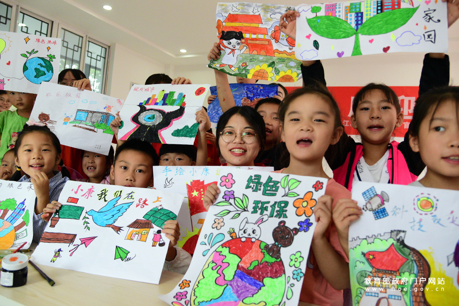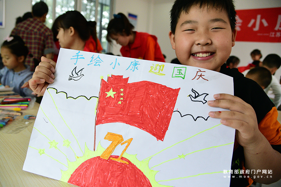 1/09月26日,在江蘇省鎮(zhèn)江市寶平社區(qū),一名小朋友展示在江蘇大學(xué)志愿者指導(dǎo)下創(chuàng)作的小康生活繪畫作品。當(dāng)日,江蘇省鎮(zhèn)江市官塘橋街道寶平社區(qū)聯(lián)合江蘇大學(xué)志愿者開展“手繪小康迎國(guó)慶”主題教育活動(dòng),小朋友通過(guò)描繪綠色家園、歡樂(lè)校園、現(xiàn)代城市等小康生活主題繪畫作品,感受幸福生活,迎接即將到來(lái)的國(guó)慶節(jié)。(石玉成/攝)