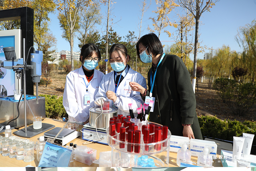 濰坊職業(yè)學(xué)院化妝品技術(shù)專業(yè)學(xué)生在展示口紅制作。11月8日,2020年職業(yè)教育活動(dòng)周全國(guó)啟動(dòng)儀式暨全國(guó)職業(yè)院校技能大賽改革試點(diǎn)賽開幕式在山東濰坊職業(yè)學(xué)院舉行,活動(dòng)周現(xiàn)場(chǎng)多所職業(yè)院校的學(xué)生展示專業(yè)技能。