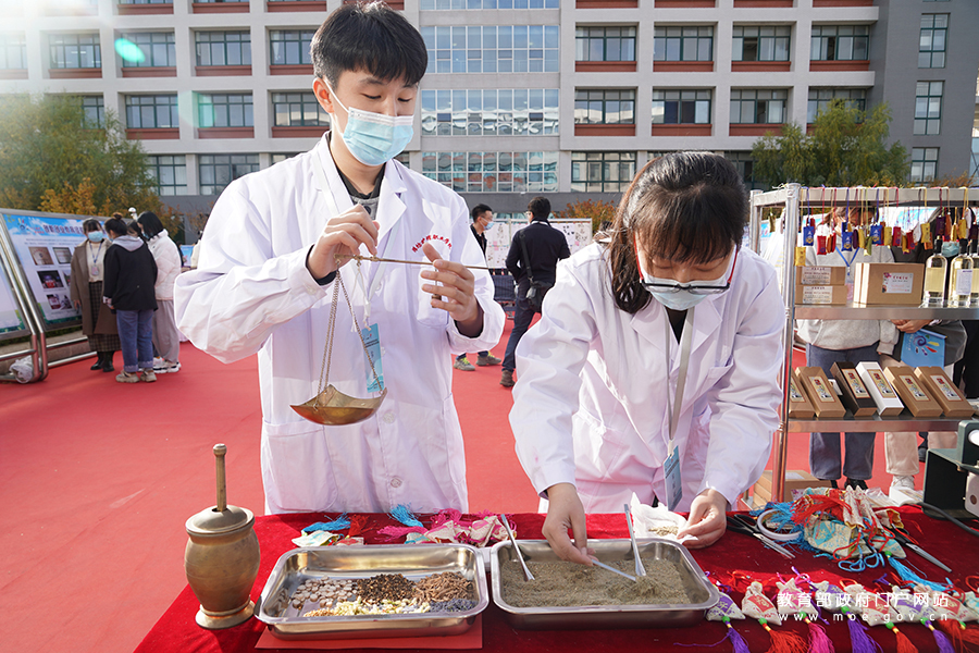 濰坊護(hù)理職業(yè)學(xué)院中藥學(xué)專業(yè)中藥香囊創(chuàng)新創(chuàng)業(yè)項(xiàng)目現(xiàn)場(chǎng)制作展示。