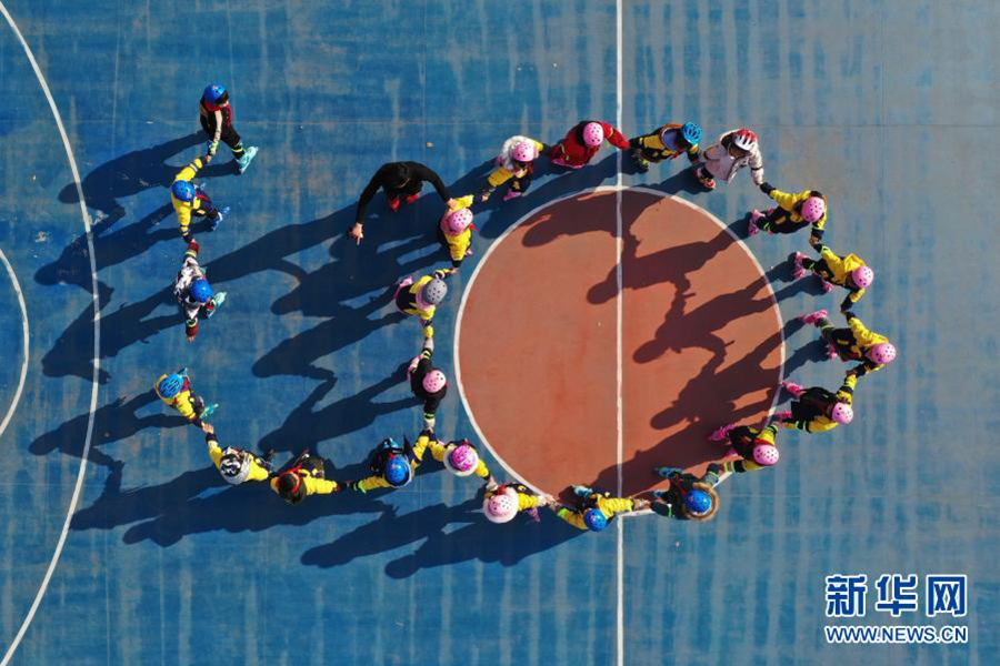 1/01月19日,江蘇泗洪育才實(shí)驗(yàn)學(xué)校的輪滑隊(duì)員在校園內(nèi)訓(xùn)練。(新華社發(fā) 許昌亮/攝)