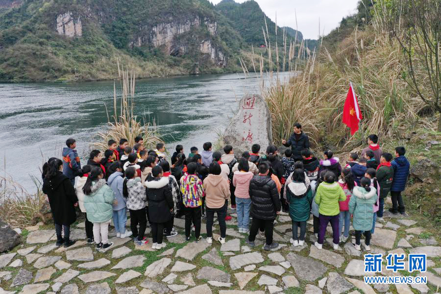 1/02月28日,學(xué)生們?cè)诼?tīng)講解員講述紅軍突破烏江的故事。(新華社記者 劉續(xù)/攝)