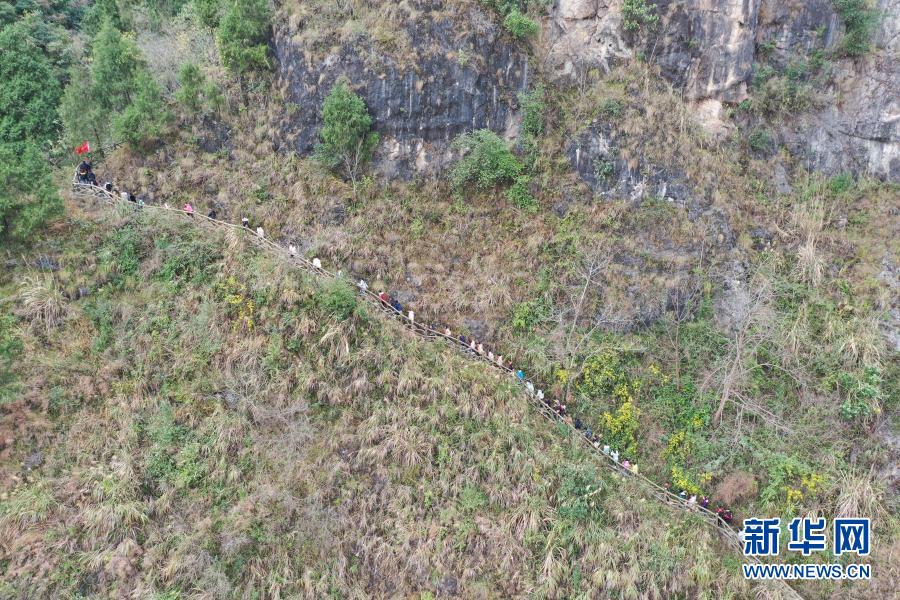 1/02月28日,學(xué)生們參加重走長(zhǎng)征路活動(dòng)(無(wú)人機(jī)照片)。(新華社記者 劉續(xù)/攝)