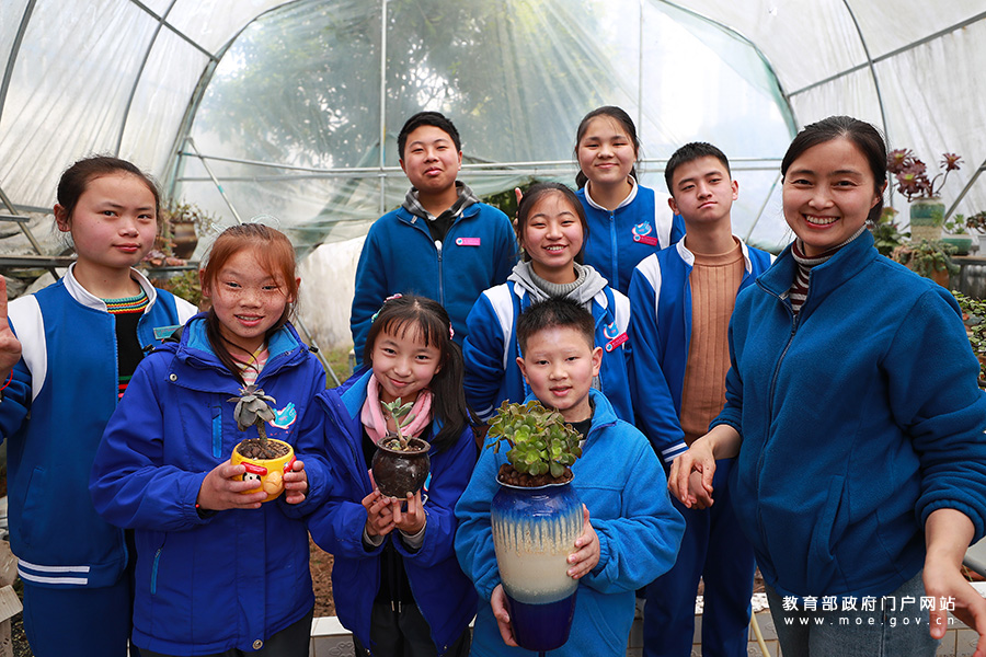 3月23日,貴州省務(wù)川縣特教學(xué)?;ɑ艽笈飪?nèi),老師和學(xué)生一起進(jìn)行盆景栽培實(shí)習(xí)。(鄭啟彥、張學(xué)軍/攝)