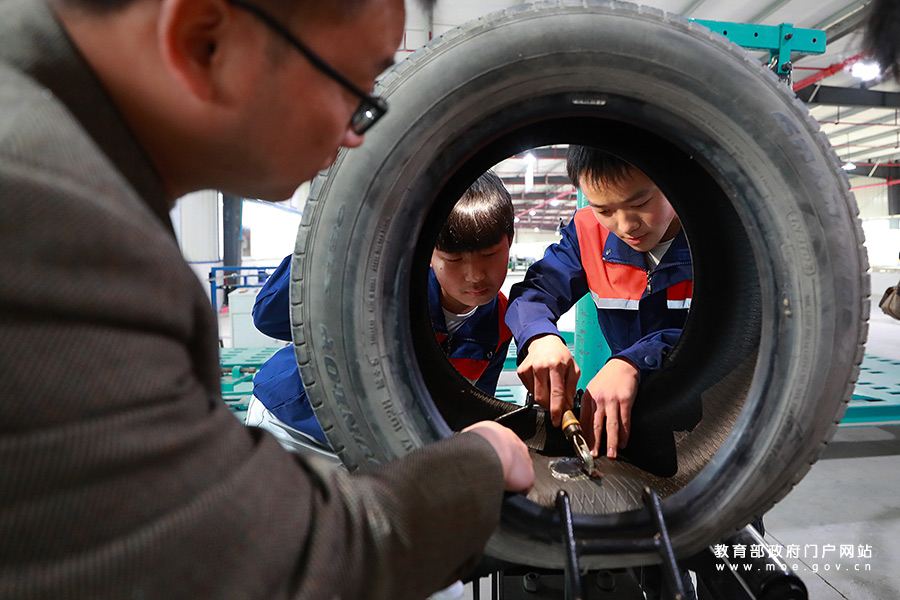 3月25日,貴州省遵義市播州區(qū)中等職業(yè)學校汽車維修專業(yè)學生正在實訓。(鄭啟彥 張學軍/攝)