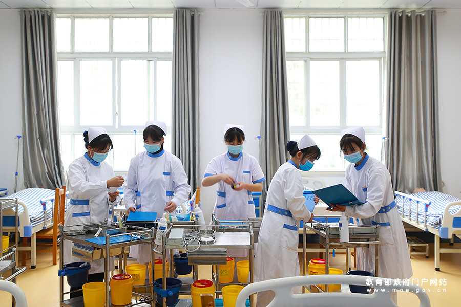 3月25日,貴州省遵義市播州區(qū)中等職業(yè)學校護理專業(yè)學生在進行實操訓練。(鄭啟彥 張學軍/攝)
