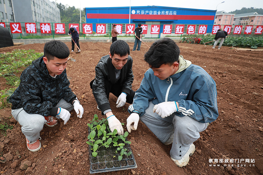 3月25日,貴州省遵義市播州區(qū)中等職業(yè)學校農(nóng)科基地,學生們在培育蘑菇。(鄭啟彥 張學軍/攝)