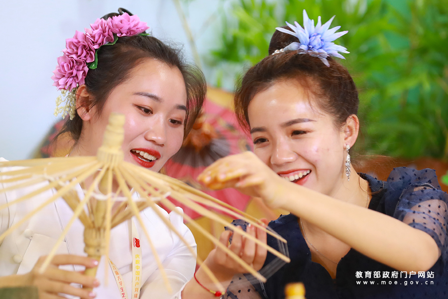 1/0南京鐵道職業(yè)技術(shù)學(xué)院的同學(xué)們跟隨國家級非遺傳承人學(xué)習(xí)燈彩扎制技藝。5月6日,全國第六屆大學(xué)生藝術(shù)展演活動在成都開幕。本屆展演設(shè)立了大學(xué)生藝術(shù)實踐工作坊展示和優(yōu)秀藝術(shù)作品展覽,將呈現(xiàn)來自全國各大高校的43個藝術(shù)實踐工作坊和253幅學(xué)生、高校校長的藝術(shù)作品。本屆展出的作品具有地域特征、民族特色和教育特點,傳達了青年學(xué)子對中華優(yōu)秀傳統(tǒng)文化的深厚感情,展現(xiàn)了高校美育培養(yǎng)創(chuàng)新意識、激發(fā)創(chuàng)造活力和服務(wù)經(jīng)濟社會發(fā)展的生動實踐。(張學(xué)軍/攝 李佩/文)