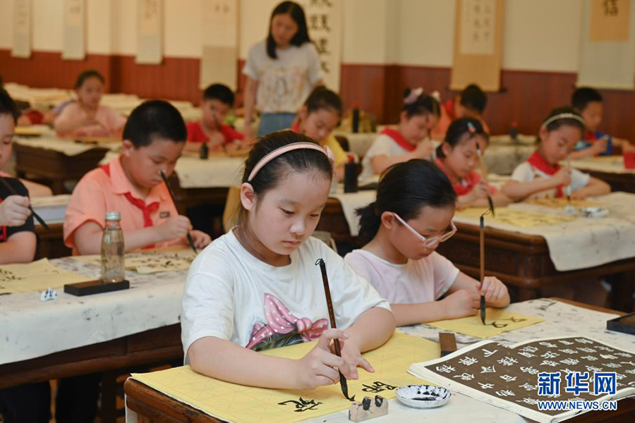 1/05月11日,在福州市烏山小學,學生在參加課后書法興趣班。(新華社記者 宋為偉/攝)