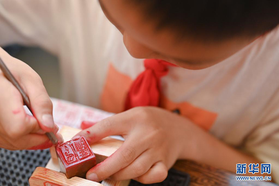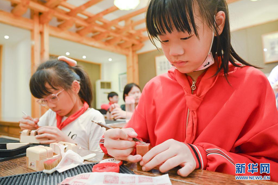 1/05月11日,在福州市烏山小學,學生在參加課后篆刻興趣班。(新華社記者 宋為偉/攝)